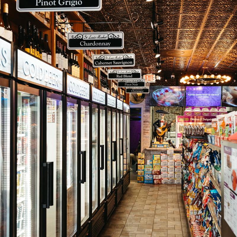 St. Louis Market, located in the heart of New Orleans‘ world-famous French Quarter, is a clean and modern market that offers wine, liquor, tobacco, daiquiris, and a full bar. Also available are fresh fried chicken, poboys, convenience food, and grocery items as well as health aid necessities.